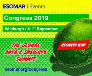 About ESOMAR: ESOMAR is the global voice of the data analytics, research and insights community, speaking on behalf of over 6000 individual professionals and more than 600 companies who provide or commission data analytics and research in more than 130 countries, all of whom agree to uphold the ICC/ESOMAR International Code. Together with national and international research associations, ESOMAR promotes professional standards and self-regulation for the insights sector and encourages, advances and advocates for the role and value of data analytics, market and opinion research in illuminating real issues and bringing about effective decision-making. The ICC/ESOMAR Code and all ESOMAR guidelines are available on www.esomar.org.