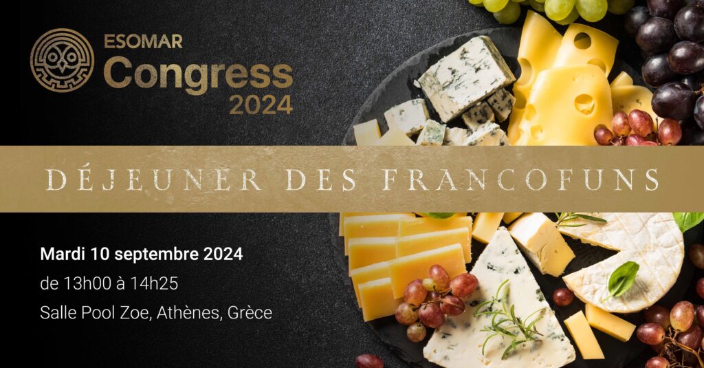 Nous vous convions cordialement à cet événement spécial qui réunira tous les délégués francophones lors du congrès annuel d’ESOMAR à Athènes, le mardi 10 septembre prochain. Cette occasion unique de networking vous permettra de discuter avec vos partenaires et de renforcer votre réseau francophone.