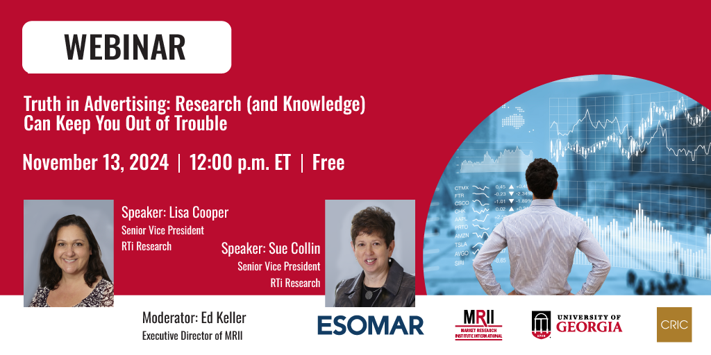 This webinar is brought to you by a unique collaboration between ESOMAR, the world’s leading international research association; the University of Georgia’s Center for Continuing Education, the leader in self-paced online research courses; Market Research Institute International, a non-profit educational institute comprising of practitioners maintaining and evolving the Market Research Core Body of Knowledge (MRCBOK™); and the Canadian Research Insights Council, Canada’s market research association.