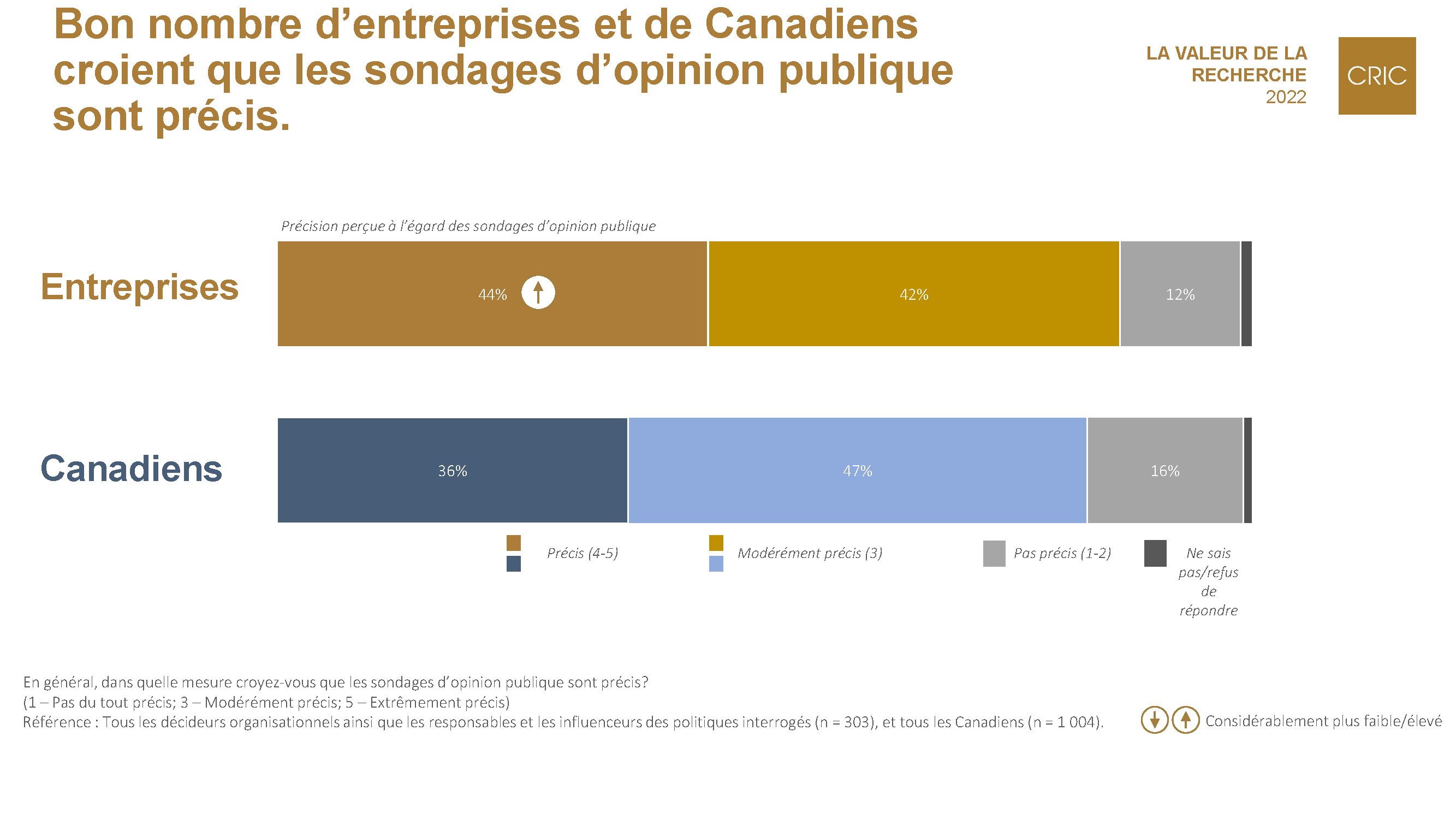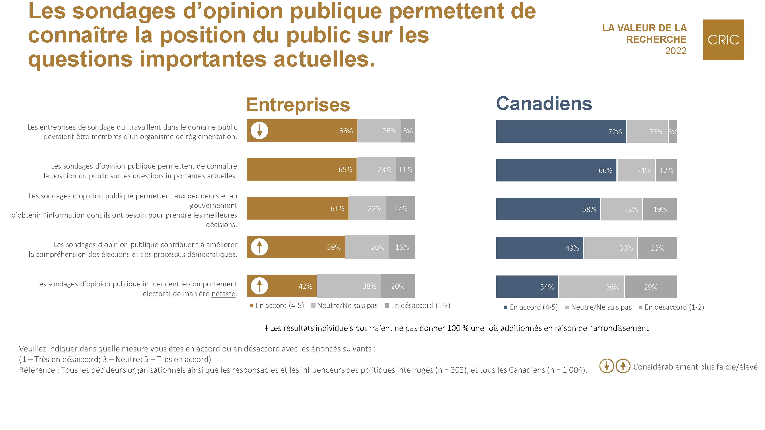 - Deux tiers des Canadiens et des dirigeants d’entreprise croient que les sondages permettent de connaître la position du public sur les questions importantes actuelles :